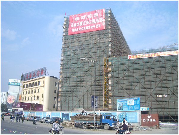 由洛茲置業(yè)公司開發(fā)的,位于寧波輕紡城西側號稱鄞州石碶CBD的洛茲大廈,經(jīng)一年另兩個月的緊張施工,其單體10層共51620平方米的主體結構已于2009年10月28日上午順利結頂。